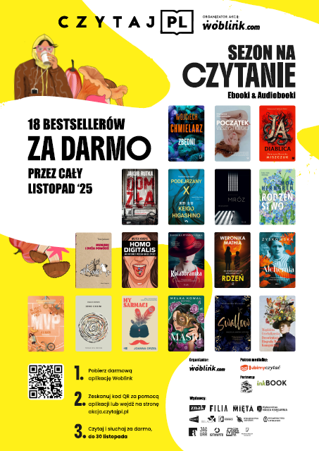 Czytaj PL to całkowicie bezpłatna wypożyczalnia ebooków i audiobooków dostępna przez cały listopad. Dzięki aplikacji Woblink miłośnicy literatury zyskają dostęp do 18 wyjątkowych książek. Wśród nich znajdą tytuły królujące na listach bestsellerów, gorące nowości, pozycje nagradzane, docenione przez krytyków i takie, które podbiły serca czytelników.